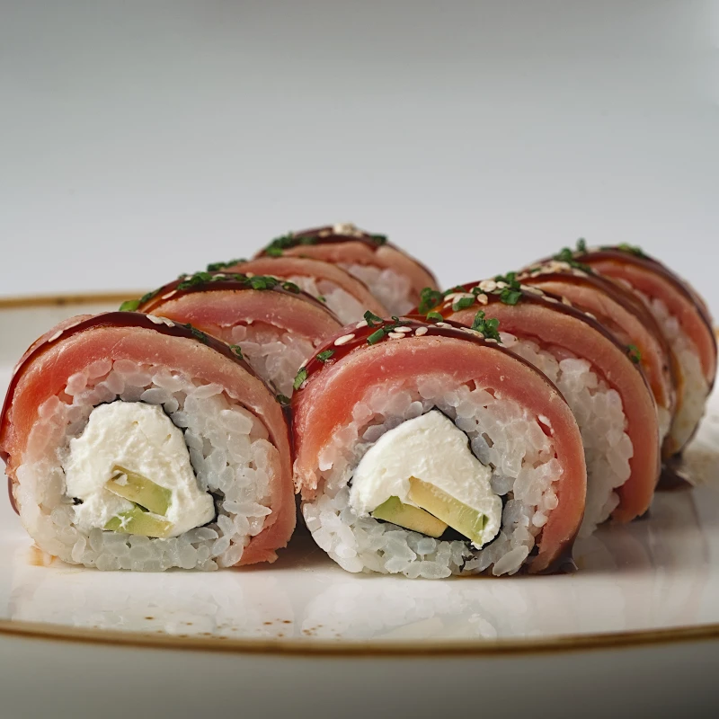 Нежный тунец, сливочный сыр и свежий авокадо — гармония вкуса в каждом кусочке.